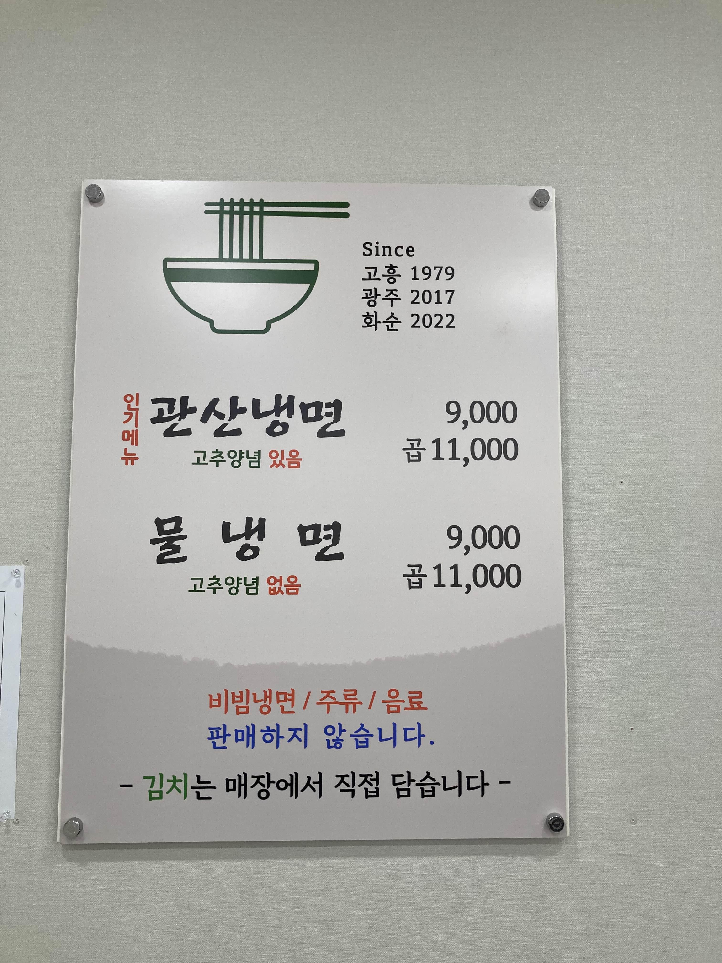 메뉴는 1. 관산 냉면 2. 물냉면뿐이에요. ⭐️